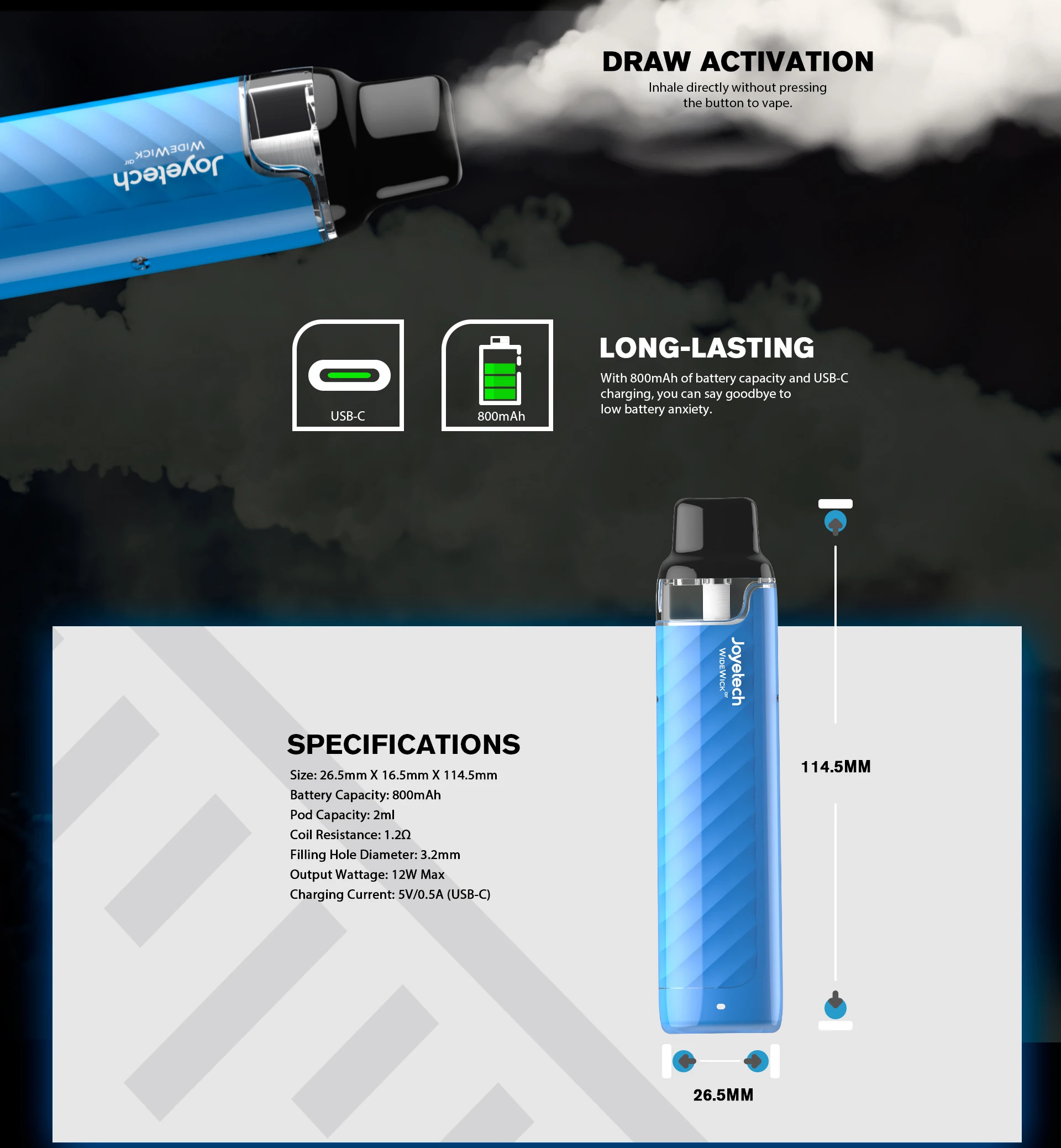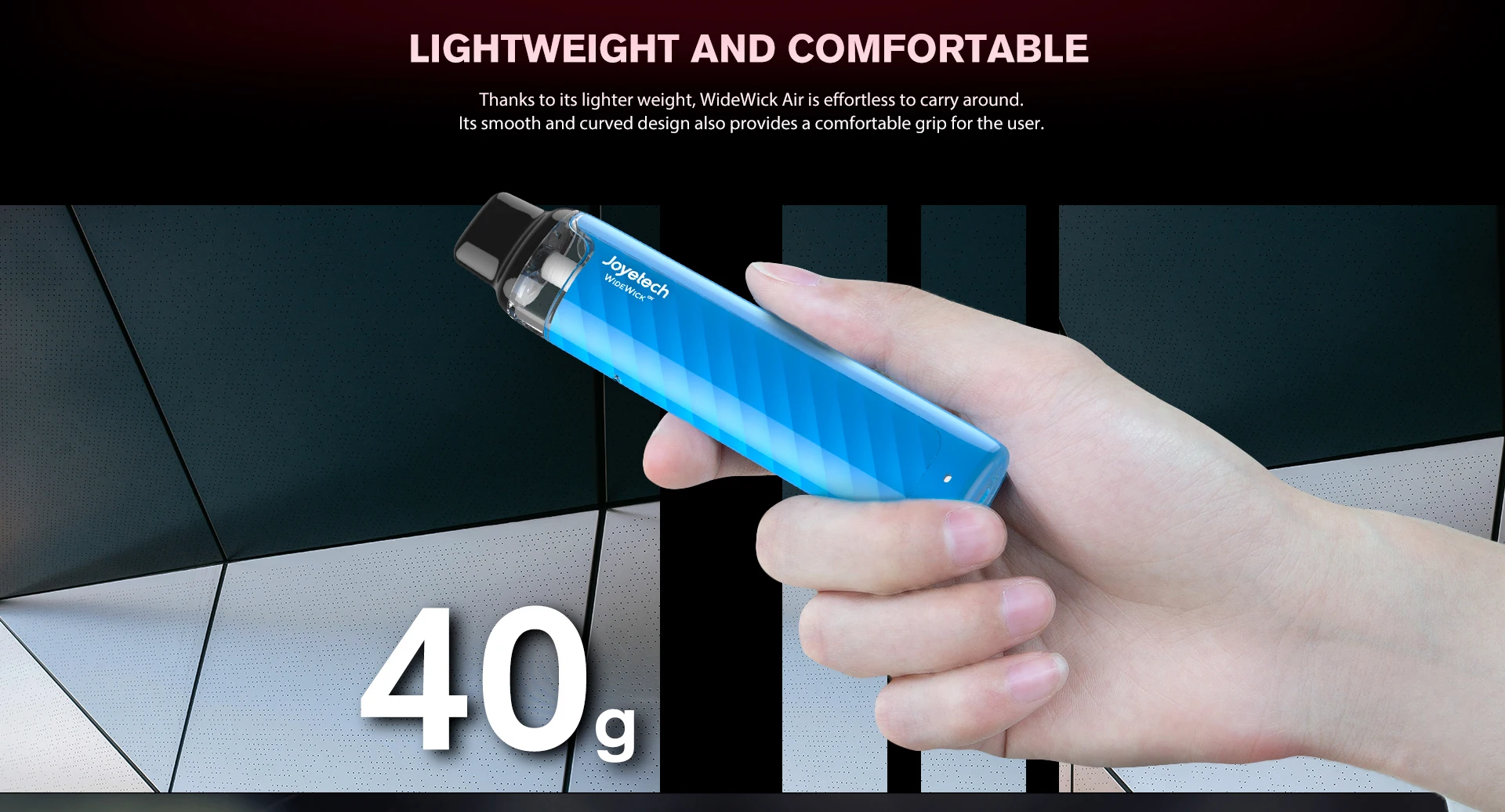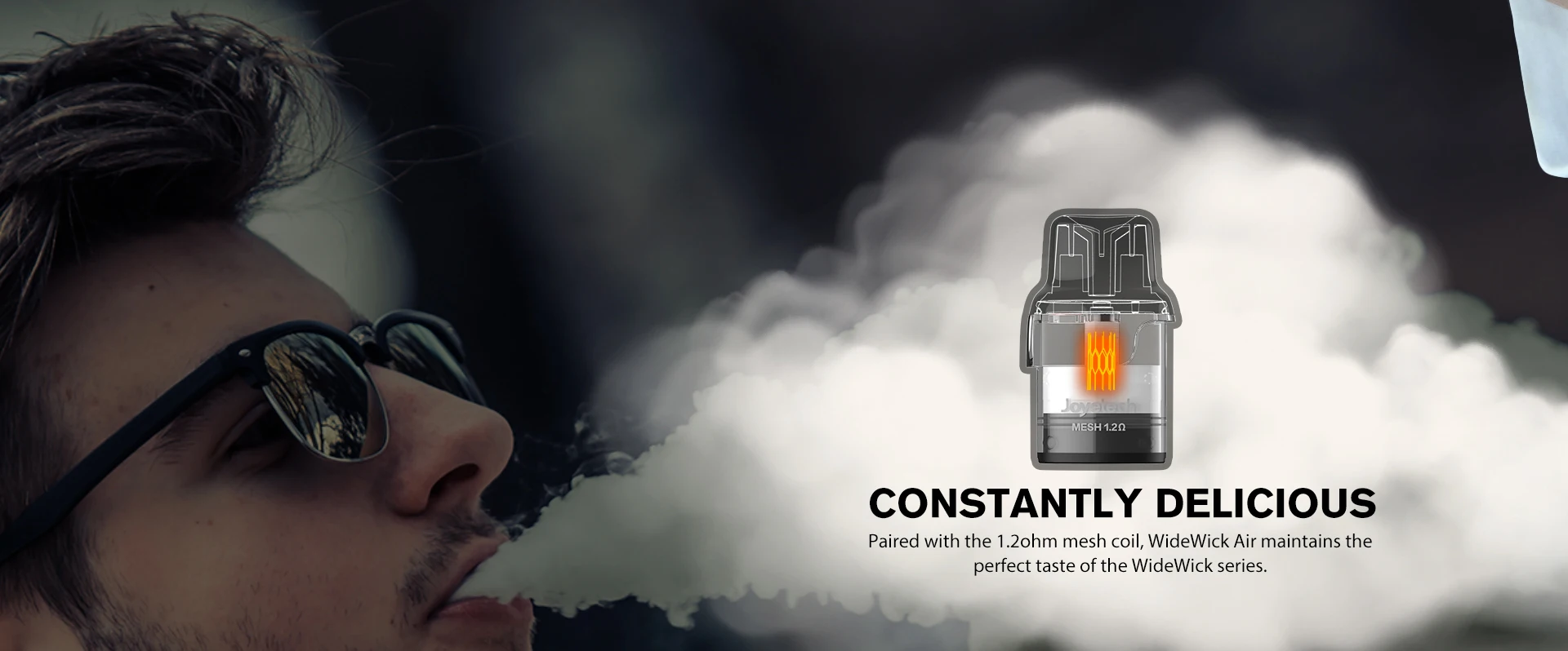 Widewick Air Kit ver öffentlicht ein schöneres und stilvolles Erscheinung sbild, einen leichteren Körper und den fortschritt lichsten Widewick™Technologie. Es enthält den großen Widewick™Baumwolle im Inneren, die die E-Liquid-Aufnahme gründlich aus der ganzen Umgebung macht, bringt eine ausgewogene Heizung ohne Spucke. Die große Baumwolle im Inneren speichert immer genug E-Flüssigkeit in sich, um keine trockenen Treffer zu gewährleisten, wann immer und wie auch immer Sie dampfen. Darüber hinaus saugt die große Baumwolle E-Liquid schnell auf und schließt es ein, und Sie können nach einigen kontinuier lichen Zügen reinen Geschmack genießen. Widewick Air Pod Kit ist mit der 1,2 Ohm Mesh-Spule gekoppelt. Mit zwei Luftstrom einlässen auf beiden Seiten, wird es Ihnen große mtl Vaping Erfahrung bieten. Joyetech Widewick Air Kit kommt mit 800mah eingebauten Akku, USB-C Ladeans chluss.