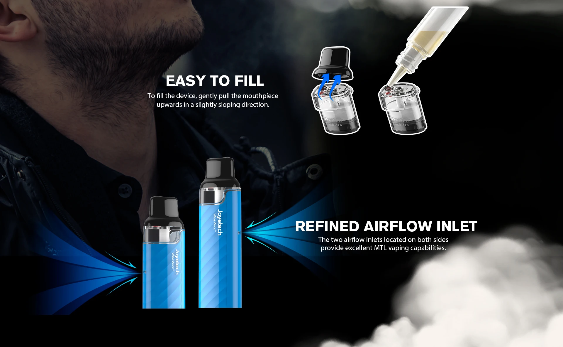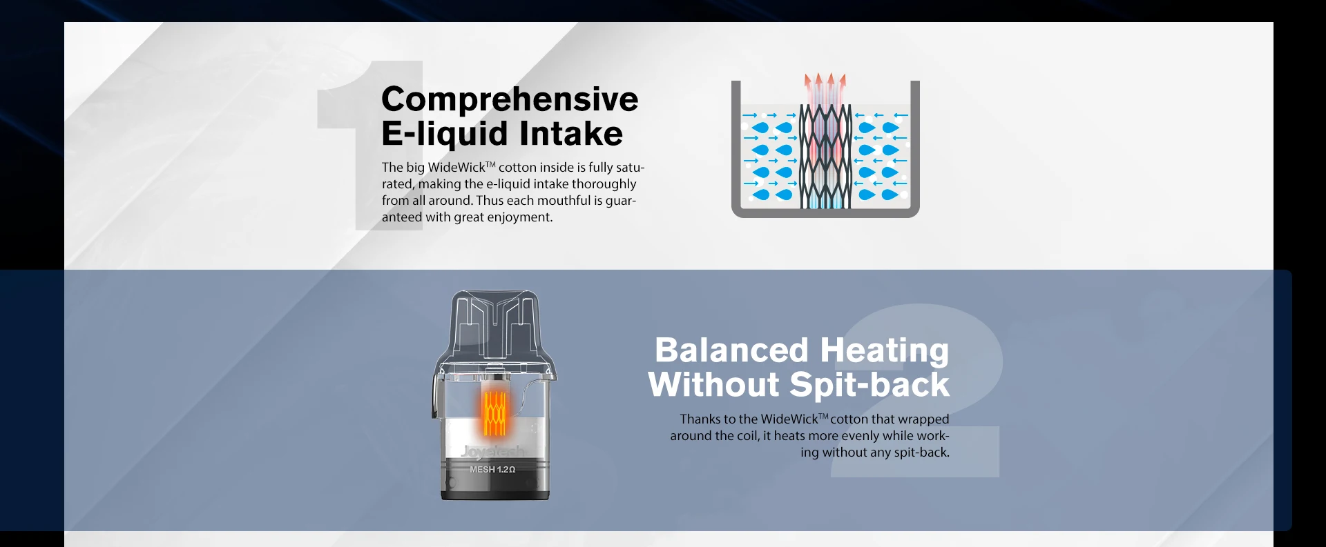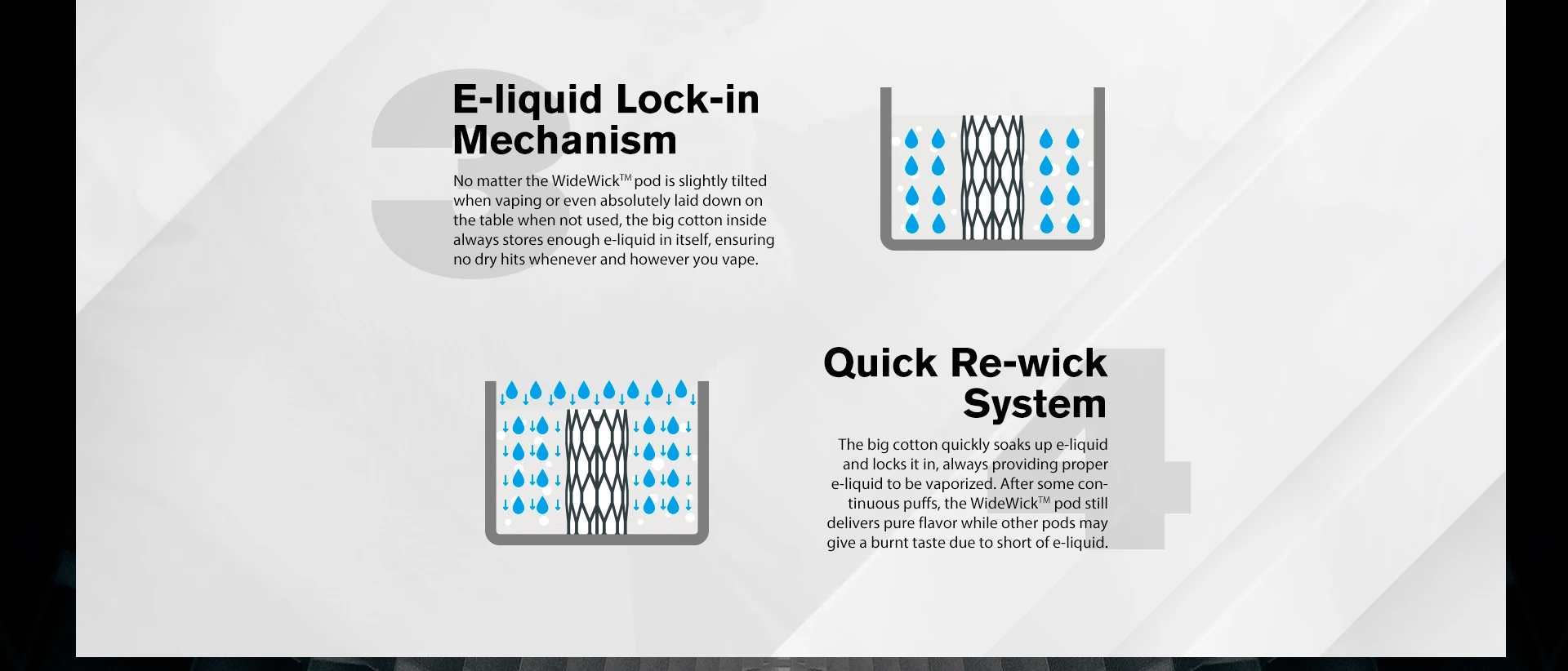 Widewick Air Kit ver öffentlicht ein schöneres und stilvolles Erscheinung sbild, einen leichteren Körper und den fortschritt lichsten Widewick™Technologie. Es enthält den großen Widewick™Baumwolle im Inneren, die die E-Liquid-Aufnahme gründlich aus der ganzen Umgebung macht, bringt eine ausgewogene Heizung ohne Spucke. Die große Baumwolle im Inneren speichert immer genug E-Flüssigkeit in sich, um keine trockenen Treffer zu gewährleisten, wann immer und wie auch immer Sie dampfen. Darüber hinaus saugt die große Baumwolle E-Liquid schnell auf und schließt es ein, und Sie können nach einigen kontinuier lichen Zügen reinen Geschmack genießen. Widewick Air Pod Kit ist mit der 1,2 Ohm Mesh-Spule gekoppelt. Mit zwei Luftstrom einlässen auf beiden Seiten, wird es Ihnen große mtl Vaping Erfahrung bieten. Joyetech Widewick Air Kit kommt mit 800mah eingebauten Akku, USB-C Ladeans chluss.