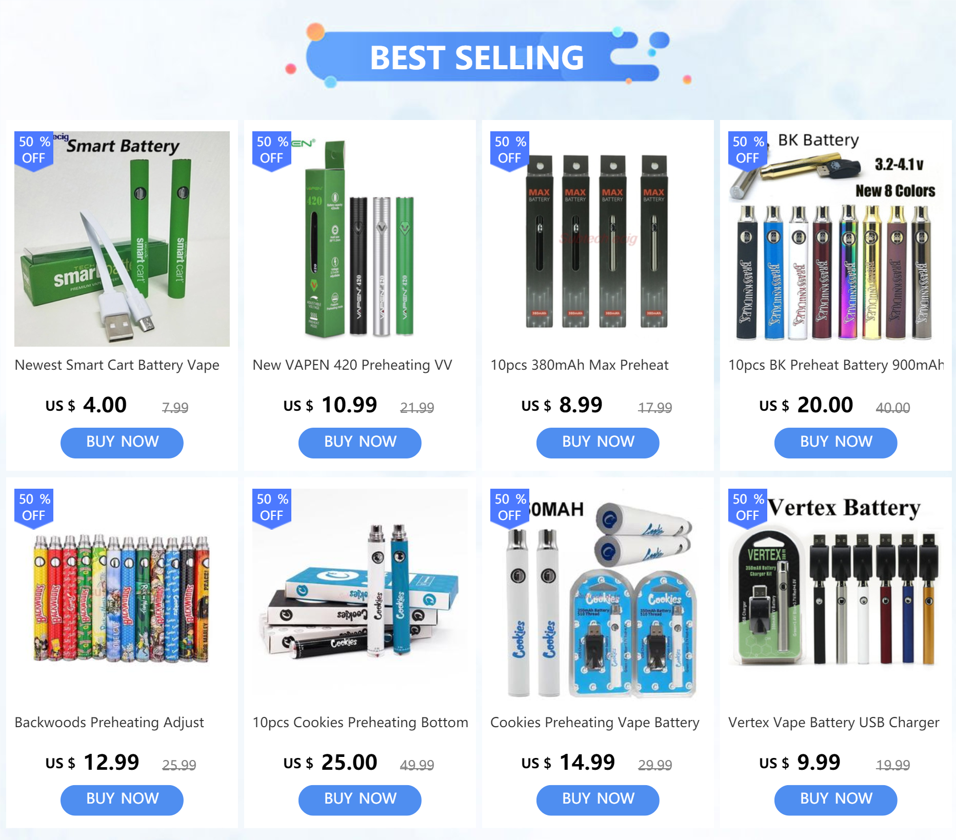 50 stücke Cookie elektronische Zigaretten Vape Pen wiederauf ladbare 320mAh Batterie Kits 0,8 ml dicke Öl Keramik patronen mit Verpackung