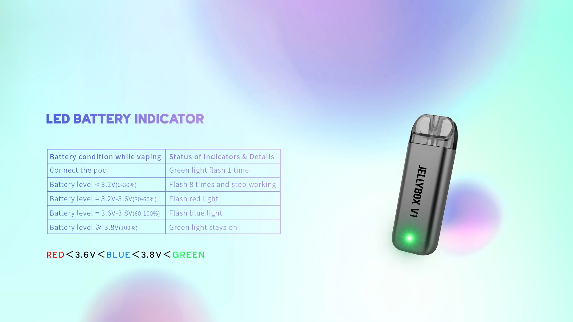 Das rincoe jelly box v1-Kit ist leichter und wiegt nur 30,2g und kann bis zu 16 Watt Ausgangs leistung erreichen, die von einer 750-mAh-Batterie unterstützt wird. Kompatibel mit der 3ml leeren Kapazität jelly box v pod, hat es eine längere Lebensdauer, sowie ein auslaufs ic heres Design, das die Erfahrung der Verwendung perfekt verbessert. Es gibt auch LED-Batterie anzeigen, um die verschiedenen Leistungs stufen anzuzeigen, um Ihr Gerät besser in den Griff zu bekommen. Nicht nur das, es hat auch mehrere Schutz funktionen, um die Sicherheit der Verwendung zu erhöhen.
