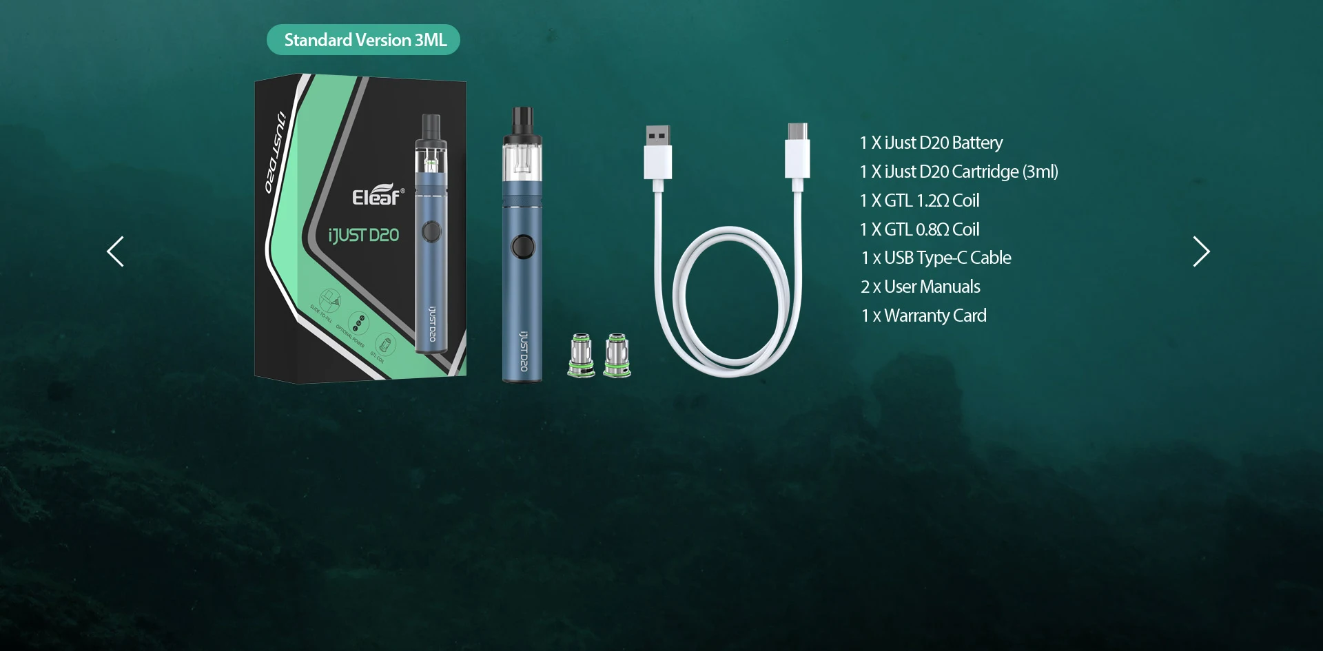 Das paket von eleaf ijust d20 pod system kit kommt mit: