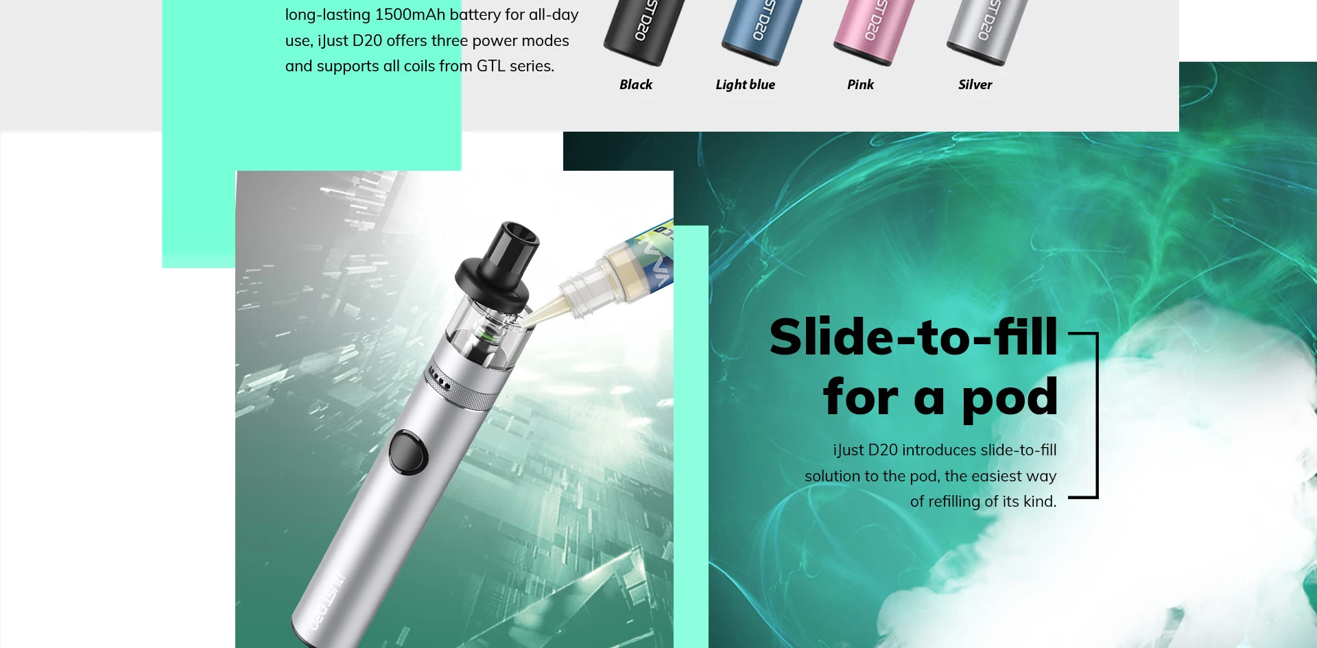 Ijust d20 kit wird von einem eingebauten 1500mah Akku mit 30w max und USB-C Schnell ladung angetrieben. Es verfügt über 3 Power-Modi (alto, mittel, baixo) und Draw-aktivierte & Button-aktivierte Modi für Ihre Option. Ijust d20 verfügt auch über 3ml E-Saft-Kapazität, einfaches Top-Füll system und raffiniertes Luftstrom-Kontroll system. Es ist mit allen eleaf gtl Spulen kompatibel, um besser zu Ihren Vorlieben zu passen. Darüber hinaus ist ijust d20 kompakt und tragbar genug, um überall zu tragen.